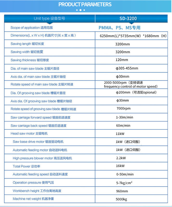 7. La rotaia guida del sedile della sega adotta marchio importato, la drittazza di sega < 0,06 mm, con alta precisione e carico pesante, il controllo servo panasonico è appositamente utilizzato per PMMA, MS, PS, PLEXIGLASS,AcrilicoPlastica.